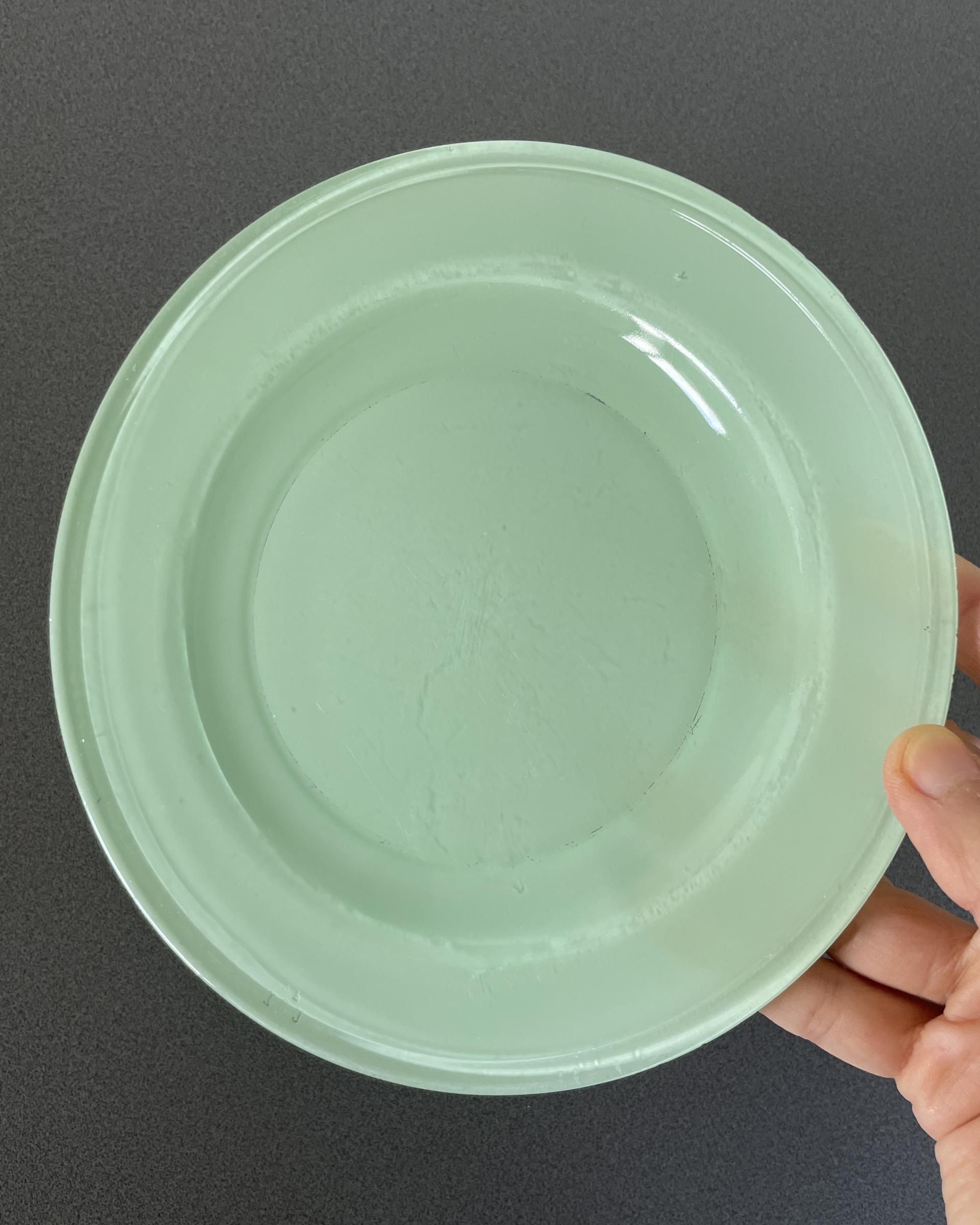 영국에서 생산된 Pyrex 사의 빈티지 유리접시입니다. 산뜻한 에메랄드 빛이 돋보이며 전체적으로 반투명한 질감을 가지고 있어 빛을 아름답고 은은하게 투과시킵니다.