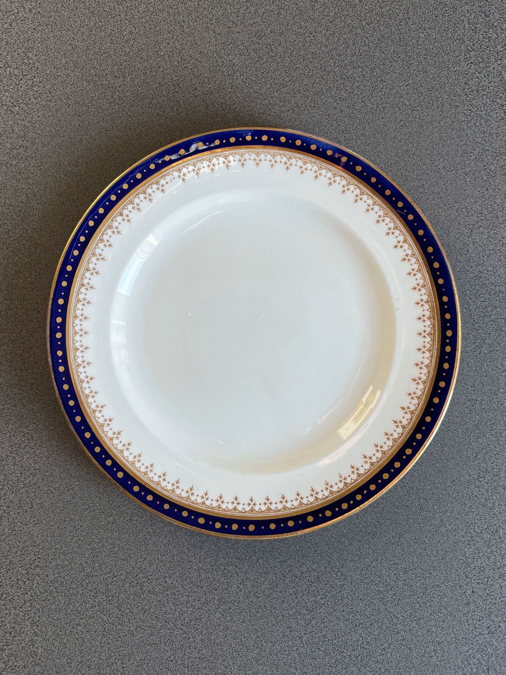 영국 Crown Staffordshire 사의 빈티지 디저트 플레이트입니다. 깊은 코발트 블루 색과 금장의 아름다운 패턴이 매력적입니다.