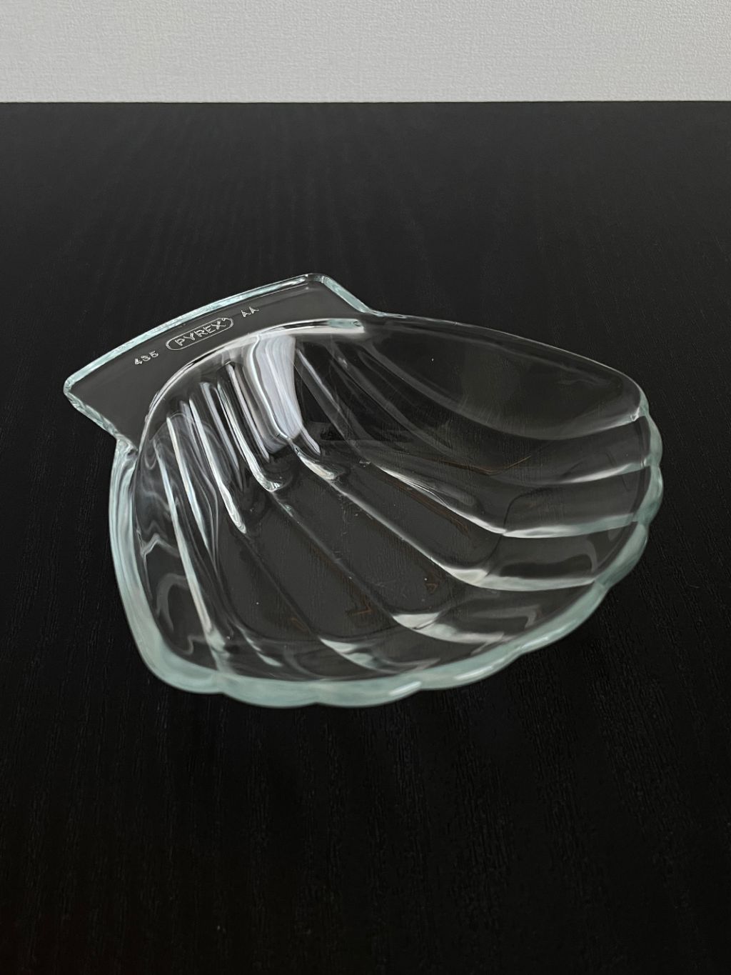 프랑스 Pyrex 사의 빈티지 조개모양 유리 접시/보울입니다. 투명하고 두께감 있는 유리의 간결한 조개모양이 아름답습니다. 소품을 담아두거나 사이드 요리 또는 디저류를 담는 접시로 활용하기에 좋은 크기입니다.