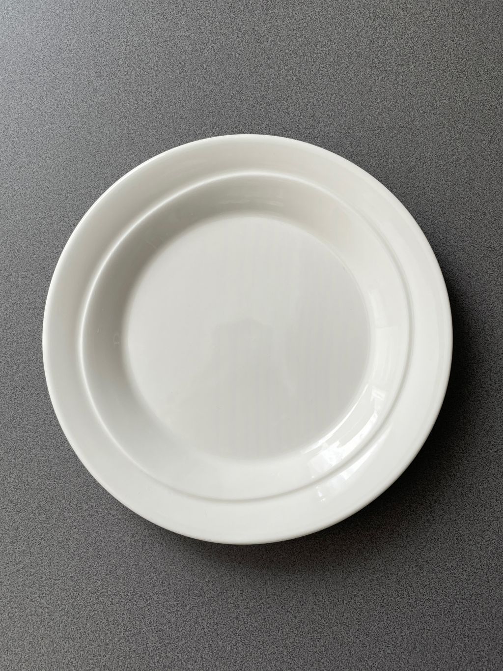전체적으로 심플한 원형디자인으로 군더더기 없이 깔끔한 인상을 줍니다. 접시의 가장자리는 두 겹의 부드러운 라인으로 단순한 구조안에 은은한 입체감을 더합니다.