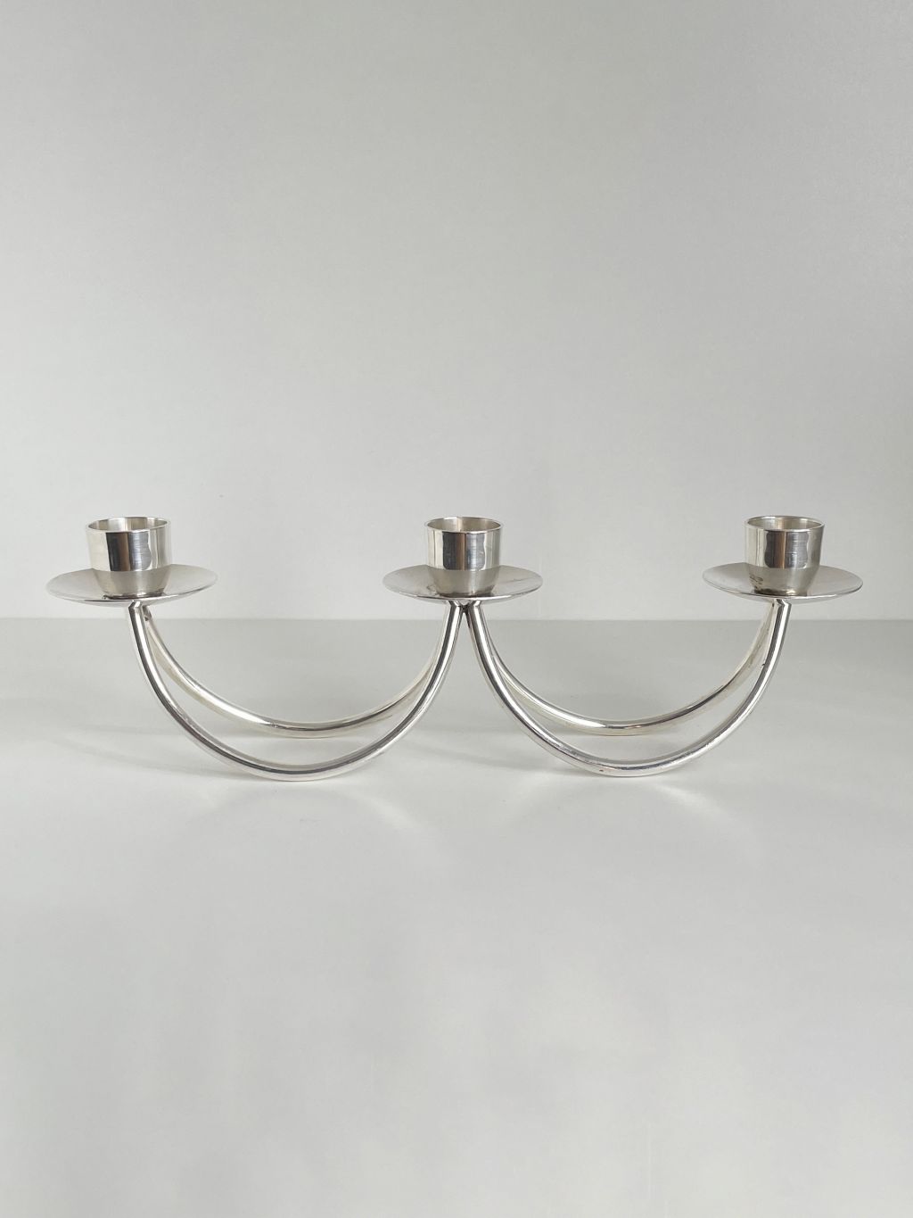덴마크 Berg 사의 은도금 재질 빈티지 촛대입니다. 반원을 그리는 촛대의 곡선이 우아하고 아름답습니다. 초를 꽂지 않아도 그 자체로 아름다운 오브제 역할을 합니다.