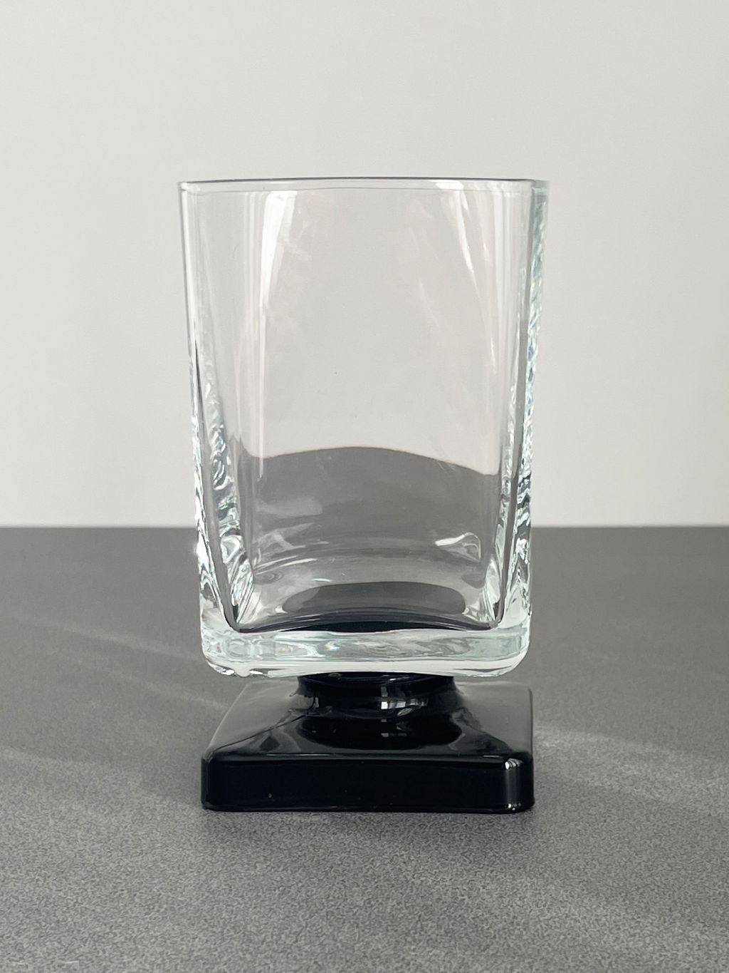 이탈리아 Luigi Bormioli 사의 Monet 시리즈 빈티지 와인 글라스입니다. 검은색 사각형 손잡이와 각진 글라스의 형태가 매력적입니다.
