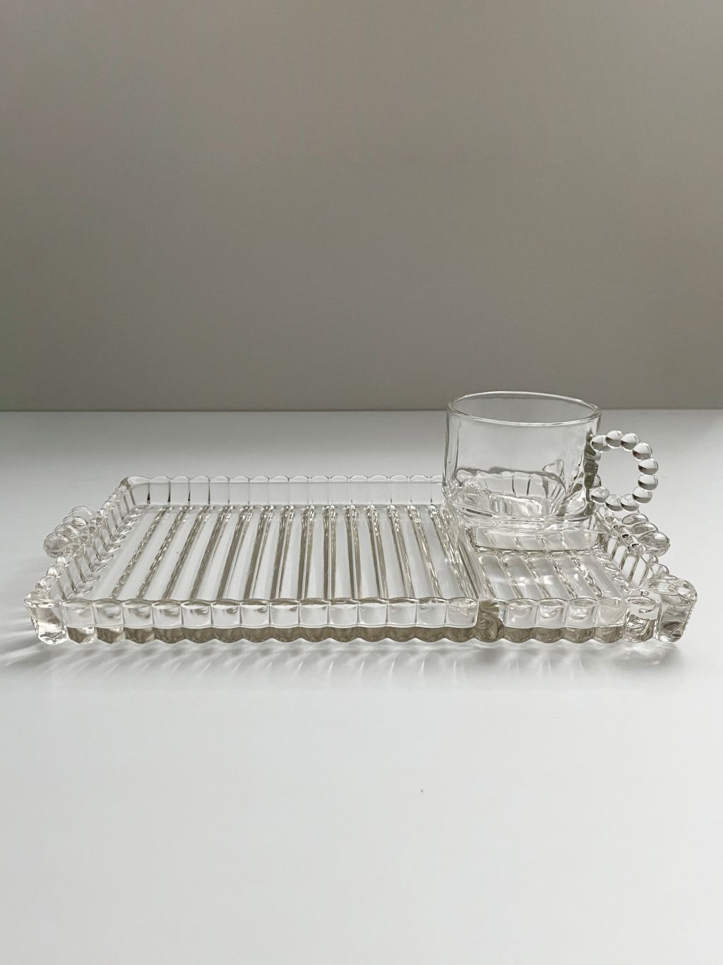 ๋ฏธ๊ตญ Hazel Atlas ์ฌ์ ๋นํฐ์ง ๊ธ๋ผ์ค ์ค๋ตํ๋ ์ดํธ์ ์ปต ์ธํธ์ ๋๋ค. ๋๊ป๊ฐ์ด ์๋ ํฌ๋ช ํ ์ ๋ฆฌ ์์ฌ์ด๋ฉฐ ํ๋ ์ดํธ์ ์ปต ์์ก์ด ๋ถ๋ถ์ ๋๊ทธ๋ ๊ตฌ์ฌ ๋ํ ์ผ์ด ๋งค๋ ฅ์ ์ ๋๋ค.