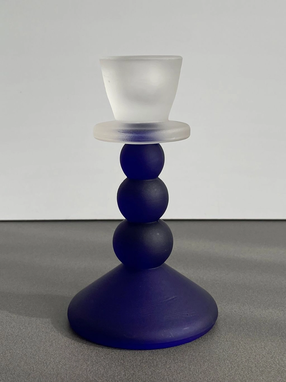 얼음이 언듯한 반투명의 매트한 유리 재질의 빈티지 캔들홀더입니다. 뽀얀 하얀색과 짙은 코발트 블루 컬러의 조화가 매력적입니다. 지름 2cm 의 초를 꽂아 사용할 수 있습니다.