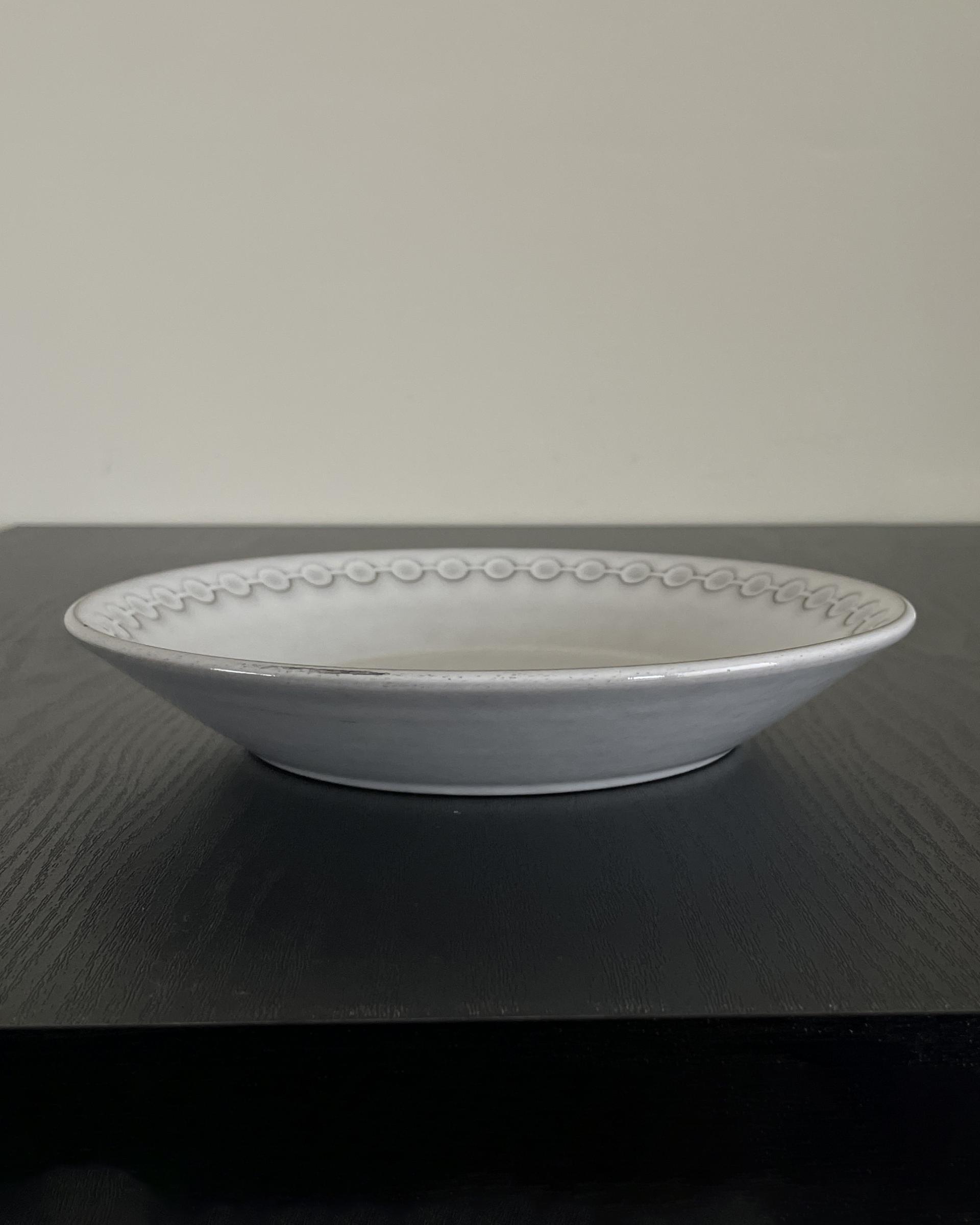 독일 Ceramano 사의 빈티지 파스타 보울입니다. 전체적으로 부드러운 톤으로, 가장자리에 연속적으로 이어진 동그란 원형 패턴이 빛을 받을때 자연스러운 음영을 더해주며 아름다운 리듬을 전해줍니다.