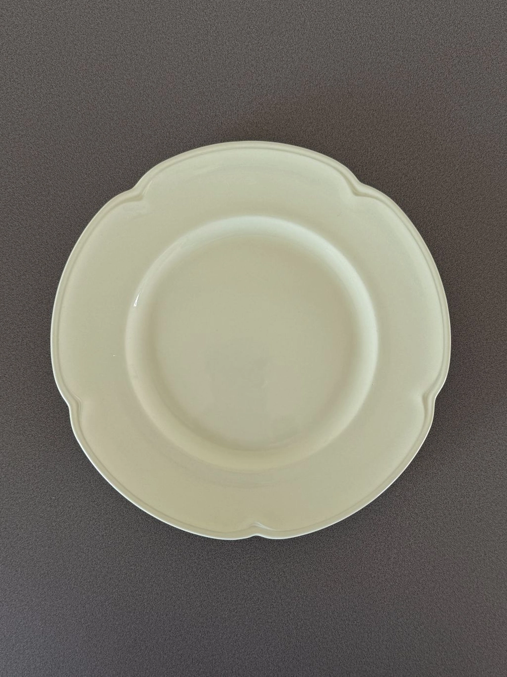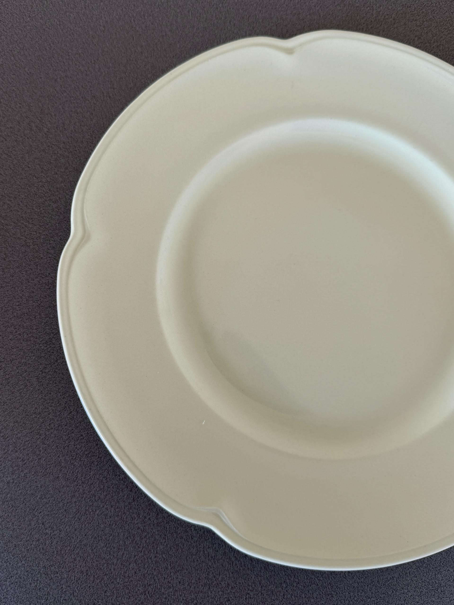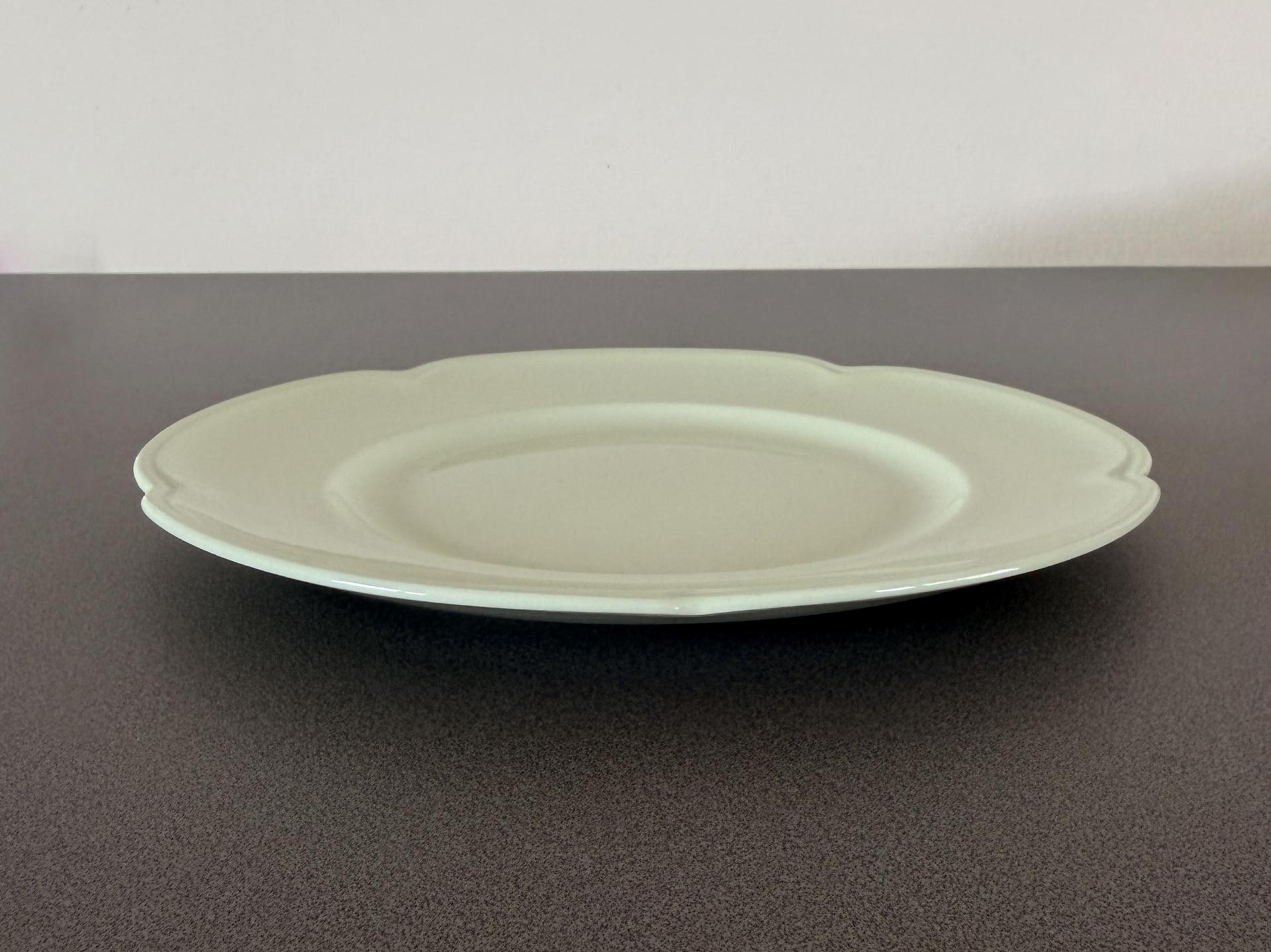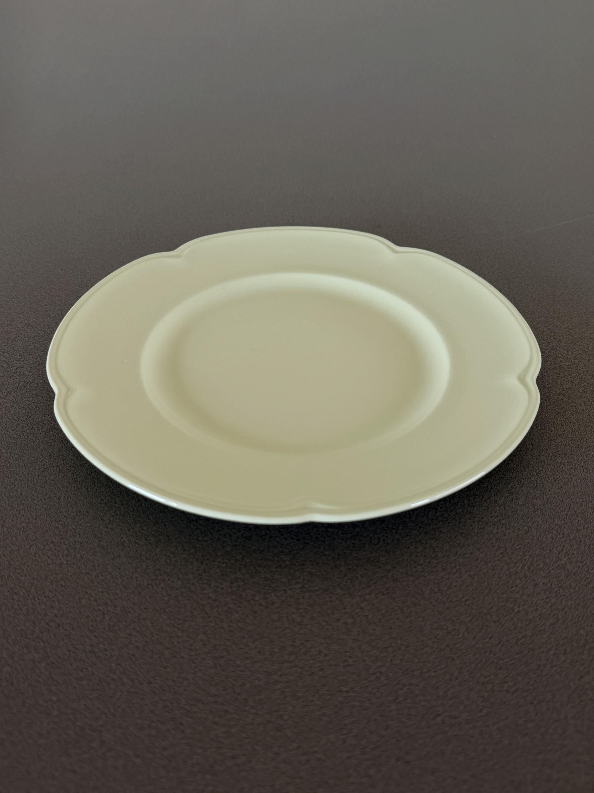 영국 Johnson Brothers 사의 빈티지 런치 접시입니다. 피스타치오 그린 파스텔 색감의 Greendawn 시리즈로 밝은 색감과 꽃잎을 연상시키는 접시의 가장자리 디자인이 아름답습니다.
